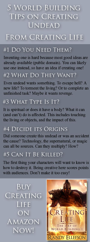 #authors can learn how create #undead in #fantasy and #scifi when #worldbuilding. These 5 tips are extracted from CREATING LIFE (THE ART OF WORLD BUILDING, 1). Read more at www.artofworldbuilding.com
